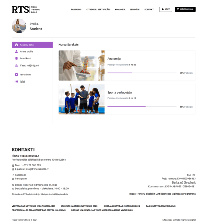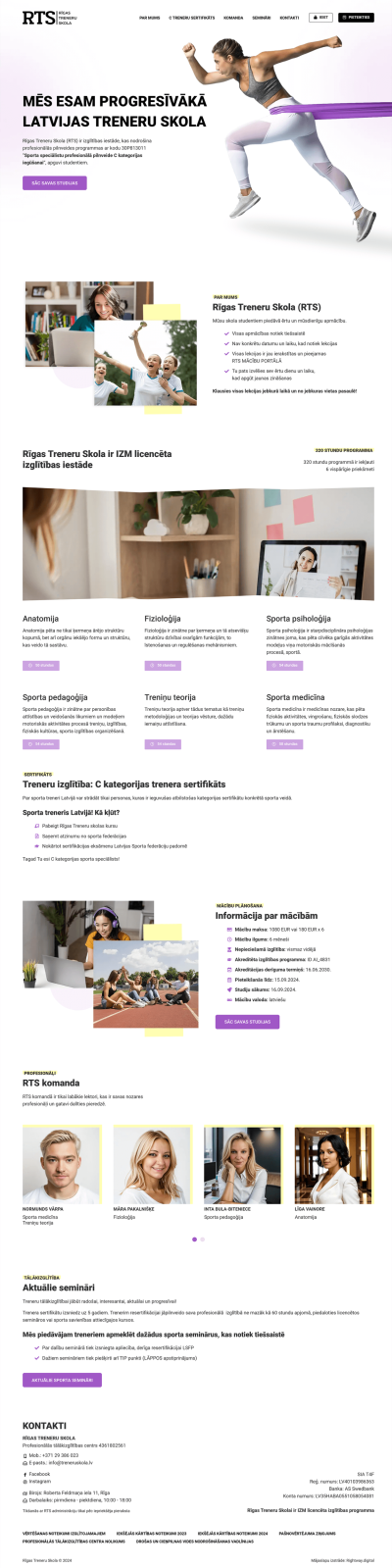 Rīgas Treneru Skola (RTS) – образовательное учреждение, предоставляющее студентам программы повышения квалификации «Профессиональное развитие специалистов спорта для получения категории С».